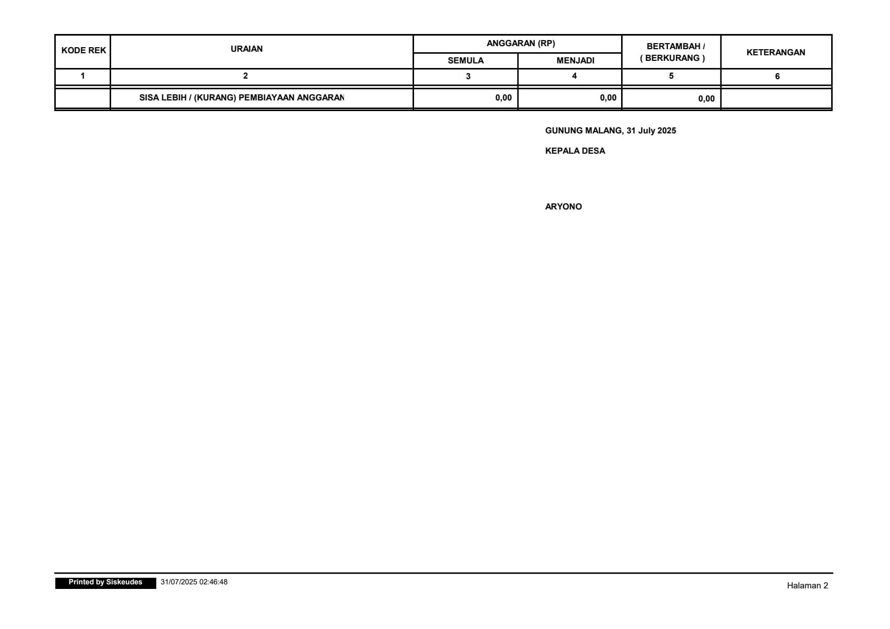 Keterangan : PEREBUHAN ANGGARAN PENDAPATAN DAN BELANJA DESA TAHUN 2025
